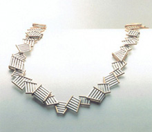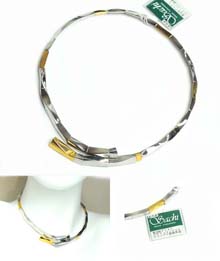 1982年、日本に初めて開設されたWGCワールド・ゴールド・カウンシル主催のコンテストに応募した際、開発した杉の木目を特殊技術でメタルに写し取ったオリジナルテクスチャーのオリジナルジュエリー。